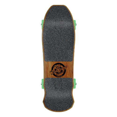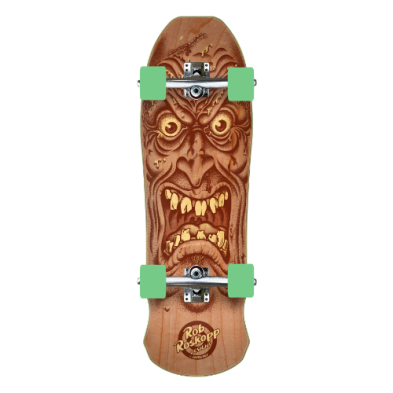 Santa Cruz Skateboards Roskopp Face cruiser featuring transparent inks on natural veneer with Independent Stage 4 polished trucks, 55mm, 78a OJ Mini Super Juice wheels, Independent Genuine Parts risers, durable steel bearings, and laser cut griptape.