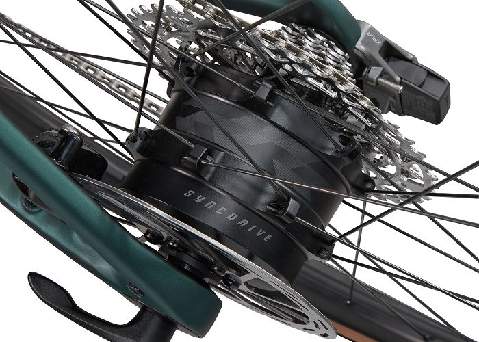 The SyncDrive Move Plus motor is integrated into the rear hub and delivers 30Nm of power (equivalent to 75Nm with a mid-drive motor) directly to the rear wheel. Weighing just 1.7kg, it’s specially tuned for the pedaling pattern of performance road riding, with minimal energy loss and more torque at higher speeds. The result is a natural feel when accelerating or maintaining steady power at speed, and no motor drag while freewheeling or coasting.
